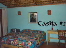 Casita #2 is slightly larger, the bathroom is attached to the bedroom, and can accommodate up to three.