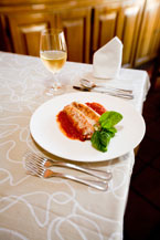 Owner and Executive Chef Gianfranco Zappalá enthusiastically greets diners in his white chef’s jacket, complete with miniature Italian flags, quite literally wearing his patriotism on his sleeve.