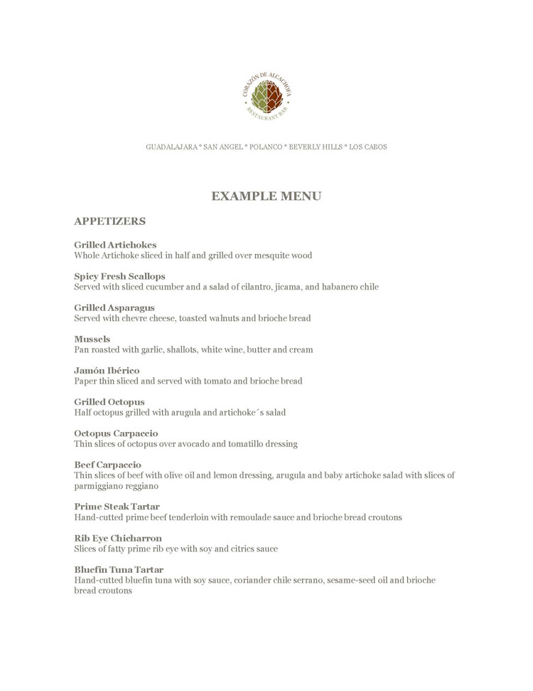 Corazon de Alcachofa - Menu Sample - Cabo San Lucas, Los Cabos, Mexico