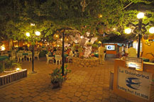 Ancient mesquite trees form a canopy over your table with large glowing lanterns hanging from the sweeping branches above. Air-conditioned salons are available for those slightly caliente evenings when something more than just cold beer is necessary to do the job. The food is fresh and portions are large – so skip a meal before coming or your friends back home will rename you Gordo. One orders from a 12’ long, 100+ item menu board listing every combination of prawns, lobster, crab, fish, steaks, ribs, chicken and more, if you even imagine.